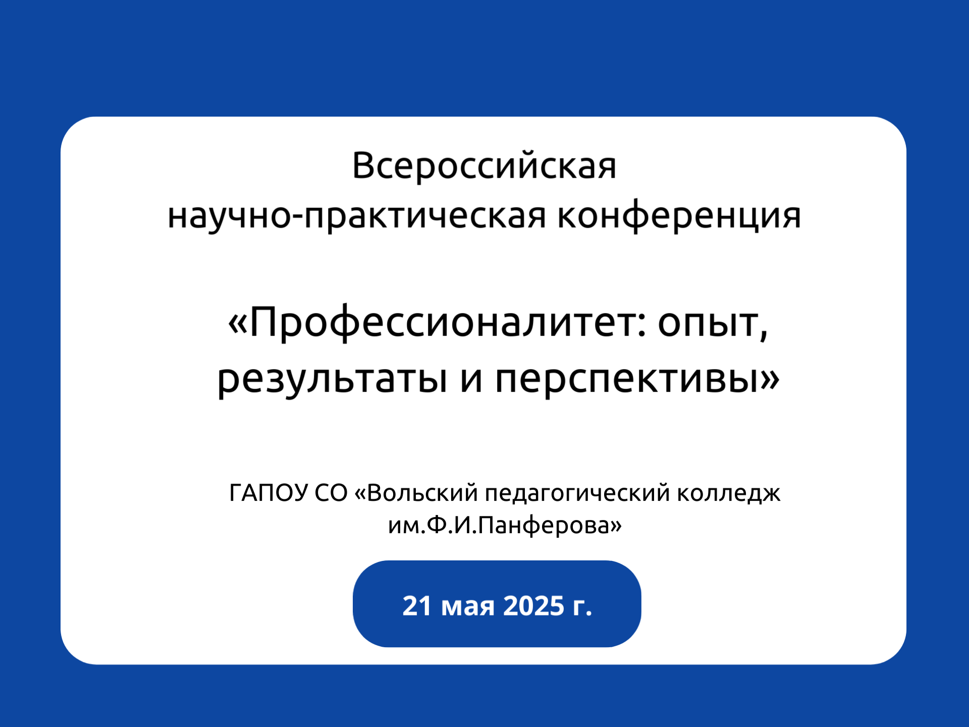 Приглашаем Вас принять участие во Всероссийской научно-практической конференции «Профессионалитет: опыт, результаты и перспективы».